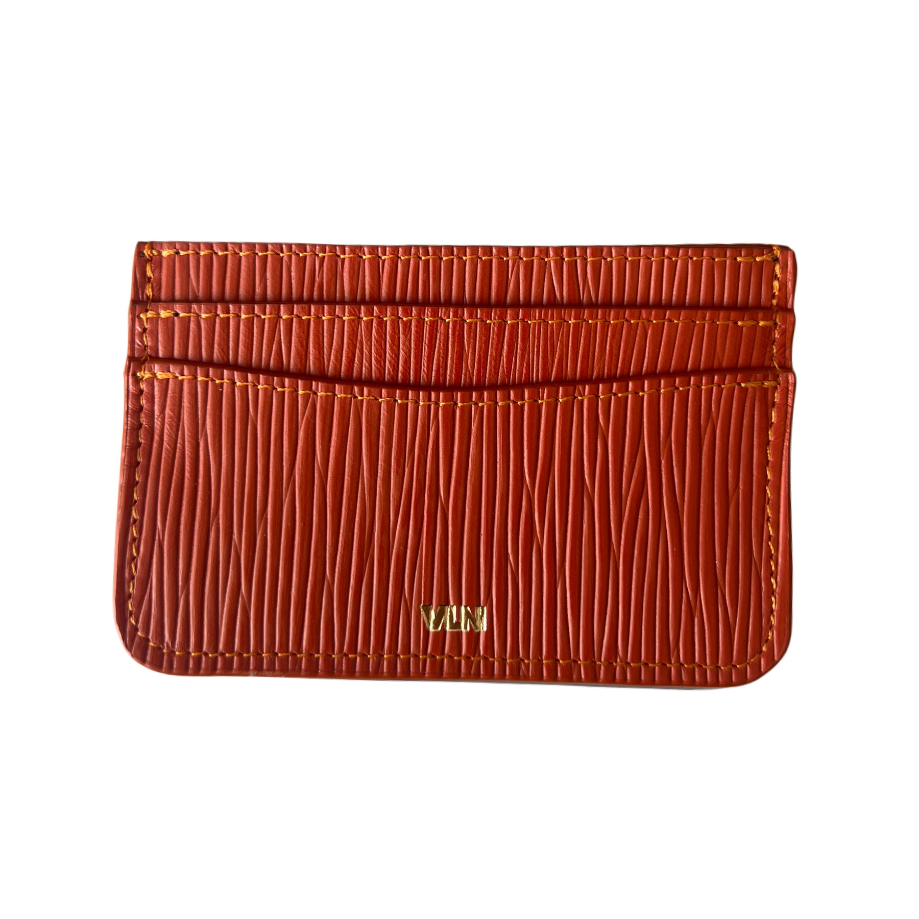 Este tarjetero es un refinado accesorio de piel con detalles sofisticados, presenta cuatro ranuras para tarjetas y un bolsillo interior. El logo decora el accesorio.